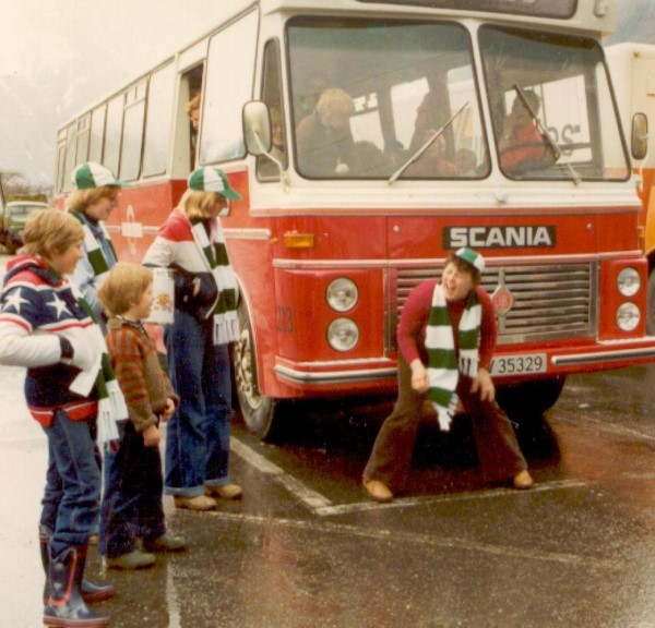 På det øvste av dei to bilda nedanfor, ser du "Supporterklubben" på tur til kamp i Vik i 1978. Etter to opprykk på to sesongar var det fotballfeber i Svelgen. På biletet ser ein f.v. Aina Alfredsen og Fredrik Varpe, og med supporterklubben sin capsar f.v. Marianne Torgersen, Elin Torgersen og Eva Sagengen. I sjåførsetet skimtar ein Asbjørn Sande.